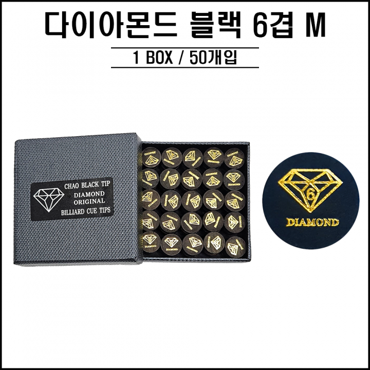 당구장 용품 > 다이아몬드 - 블랙 6겹팁 ( M )